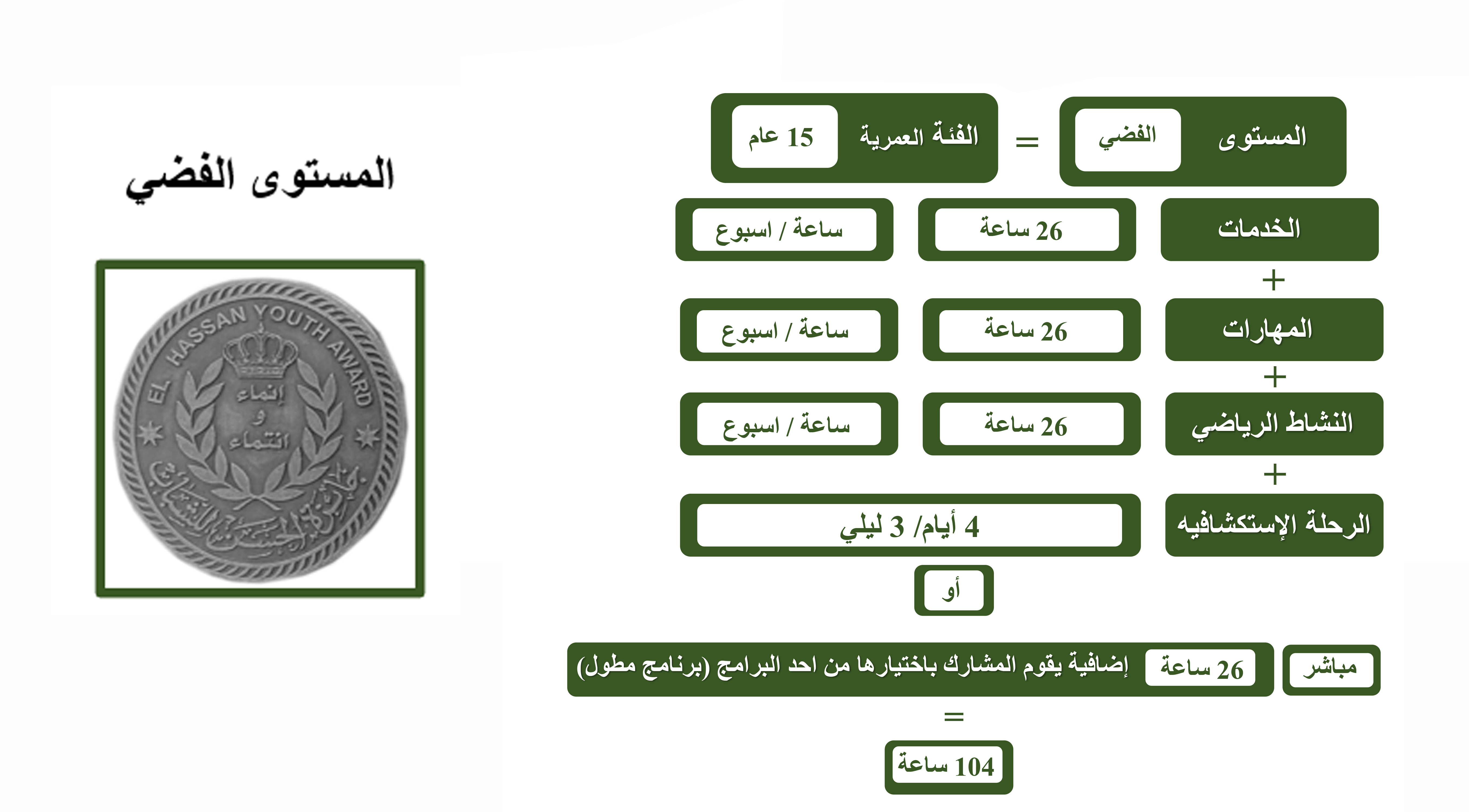 - ينبغي أن يكون عمر من يرغب بالاشتراك لأول مرة في كل مستوى من مستويات الجائزة كحد أدنى ما يلي :